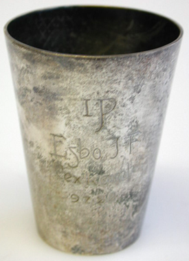 Mahd. uushopeasta valmistettu pyöreäpohjainen pokaali. Pokaali on tasasivuinen, joka levenee loivasti ylös. Sisäosa on kullattu tai mahd. messingillä päällystetty.