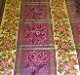neliön muotoinen silkkiliina, jonka jokaisessa reunassa on hapsutus. Kuosiinkudotuna vuorotelle valkoisella ja violetilla langalla kudottuja vyöhykkeitä, joihin sijoitettu lehti ja ruusuaiheita. Ruusut on painettu valkoiselle pohjalle.Muut kuviot on kudottuja.