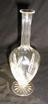 Pyöreä jalkalaatta, seinät kohoavat ylöspäin pullistuen, kapea korkea kaula, jossa suurengas. Keskiosassa 4 kpl suurikokoisia havukuvioita. Jalkalaatan alapinnassa tähtikuvio, kaulassa viistehionta. Tulppa puuttuu.