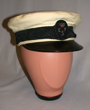 luonnonvalkoinen purjehduslakki, jossa musta ripsisidoksinen kutomalla kuvioitu reunusnauha (kuviossa ESF merkinnät). Musta lippa, jonka yläpuolella soikea merkki. Merkissä kruunu sekä kirjaimet ESF (= Esbo Segelförening). Etuosassa musta nyörikoriste, joka on kiinni reunusnauhassa kahdella mustalla napilla lakin molemmin puolin. Napeissa merkintä ESF.Lakin vuoriosa keltaista satiinipintaista puuvillaa. Vuorissa muovin alla kangasmerkki, jossa teksti E Bacher. Hikinauha ruskeaa nahkaa, jossa painomerkintänä E Bacher.