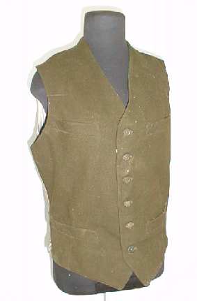 Etupuoli vihreänruskeaa villakangasta, takakappale vaaleanharmaata flanellia.