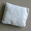 Valkoinen kangaspala käännetty kaksinkerroin, ommeltu kiinni ja täytetty tyynyksi.