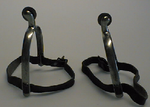 Metallikaaressa ulkoneva tappi, jossa halkio. Halkiossa akselin varassa pyörivä metallinen pyörylä. Kaaren päissä lovet, joissa soljella varustetut nahkaremmit. Kannuspyörylä kilisee liikutettaessa.
