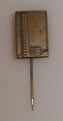 Pystyn suorakaition muotoinen merkki, jossa kohokuva stadionista, Takana neula.