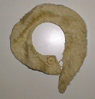Pieni renkaan muotoinen kauluri, joka suljetaan napilla, kaulurin toinen pää pitempi. Päällyskangas tekoturkista, alapuoli ripsikangasta.