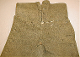 Edestä avautuvat luukkuhousut, karkeata sarkaa, pellavakankaalla vuoritetut. Korkea vyötärökaitale, jossa keskellä edessä neljän päällystetyn napin halkio. Takana vyötäröllä nauhakiinnitys. Housut avautuvat kokonaan nappihalkion avulla molemmista sivusaumoistaan. Keskisauman ympärillä on ollut nahkavahvike, josta on jäljellä pieniä paloja lahkeensuissa sekä tikkausjälki. Oikealla edessä upotettu kaitaletasku.