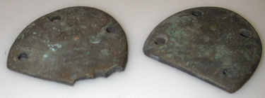 Tummuneet, painavat, lyijystä valmistetut korkolaput. Korkolaput on puoliympyrän muotoiset, joiden kulmissa on reiät kiinnitystä varten. Ne ovat aavistuksen verran kuperat. Toisesta korkolapusta on lohjennut vasemmasta yläkulmasta pala.