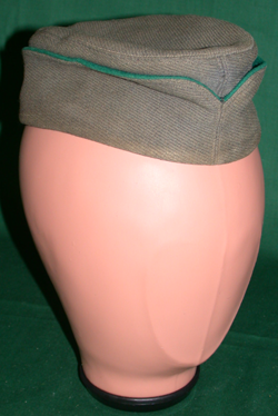 Suikkamallinen miesten toimikassidoksinen harmaa päähine, jonka reuna on ylöstaivutettu. Taitteen reunassa on vihreä villakangastere. Hikinauha on harmaata nahkaa ja vuorikangas kahdesta eri toimikassidoksisesta puuvilakangaslaadusta. Lakimusosa vuorissa takattu vinoruutuiseksi. Lakin taittuvan etureunan kesiosa laskeutuu edessä v-muotoisesti.