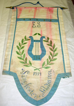 | museoesine: lippu:viirin mallinen keppiin kiinitetty lippu, Esbo Sångförening |