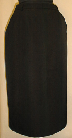 Pohjepituinen vyötärölle ulottuva kapea hame, jossa takana halkio. Vasemmalla sivulla vetoketjuhalkio ja nappi. Vuorillinen. Materiaali 55% polyesteri ja 45% villa. Viistot sivutaskut molemmin puolin.