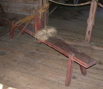 Puuta, maalattu. Paksusta lankusta tehty tukeva nelijalkainen penkki. Sen keskellä on rohkalauta pistetty läpi ja auettu kiilalla penkin alapuolelta. Jalat ulkonevat. Ruskeaksi maalattu. Rohkapiikit, rautaa, rautaa, suorat ja kulmittain riviin sijoitetut. 4-särmäiset. Uloimmaiset kaartuvat sivullepäin. Rohkalaudan pääte on kauttaaltaan rautavahvisteinen, umpinainen. Rohkapenkkiä käytettiin pellavanmuokkauksen alkuvaiheissa, kun siemenkodat irrotettiin varsista hakkaamalla pellava rautapiikkejä vasten. Rohkapenkki kuljetettiin ulos pellon laitaan, jossa pellavia oli kuivattu ja rohkiminen suoritettiin yleensä parittain.