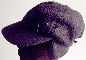 Korvasuojallinen lippalakki.mustaa hupaa.lippa kovetettu.päähine ommeltu kuudesta suiposta palasta.päälaella kangaspäälysteinen nappi.saumassa kangasmerkki, samoin korvallisella kts.merkinnät.korvasuoja käännettävä, takaosastaan kuminauhaa.