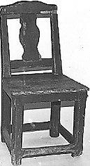 Sarja suora, alareuna hieman profiloitu; nelikulmaisten jalkojen särmiä hiukan viistetty ja niitä yhdistää kehäys; ylöskapeneva, taaksekallistuva selusta, jossa yläreunasta kömpelön kaartuva hartialauta ja pysty balusterilauta; lautaistuin