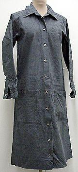 Vyötärösaumaton suora paitapuku, jossa irrallinen kapea vyö. Pitkät suorat hihat, hihansuissa halkio ja mansetti, nappikiinnitys.Pääntie pyöreä, teräväkulmainen herrainkaulus. Edestä alas saakka avoin, nappikiinnitys. Vyötärön alapuolella molemmin puolin isohkot paikkataskut.