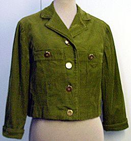 Vyötärölle ulottuva istuva jakku, jossa herrakaulus ja vajaamittaiset hihat. Hihojen suissa käänteet. Molemmin puolin valerintataskut. Kiinnitys kullanvärisin napein.