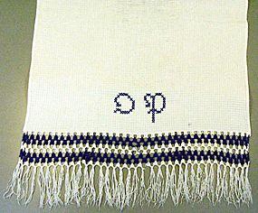 Vohvelikankaasta ommeltu pitkä, kapea pyyheliina, jossa pitkillä sivuilla koneommelpäärmeet ja lyhyillä hulpio.