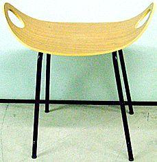 Istuinlauta kapeahko, sivuilta ylösnouseva. Istuinlaudan päässä kookkaat reiät. Jalat hieman viistot. Jalkojen päissä muoviset liukunastat.