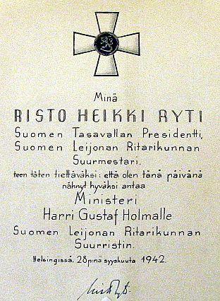 | museoesine: Kunniamerkki:Suomen Leijonan suurristi |