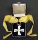 Kaularisti: valkoinen, emaloitu yrjönristi, jossa kultauksella hakaristi pintakuviona. Seppelkuvio ilman miekkoja Takapuolella vuosiluku 1939. Nauha keltapohjainen punaisin reunusjuovin. Omistuskirja: Pahvia, kullanvärisen Suomen Leijonan alapuolella osin painettu osin käsinkirjoitettu teksti. Kotelo: Mustalla vahapaperilla? päällystetty suorakaiteen muotoinen pahvikotelo. Kansi saranoitu, etusivussa lukitushelat. Sisällä paikka ristille, verhoiltu mustalla sametilla.