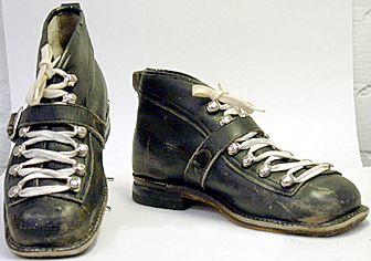 | museoesine: Jalkineet, naisen:hiihtokengät |
