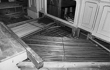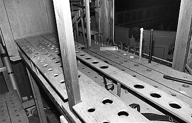 5-osaiset uusgoottilaisten kolmipäätyjen koristamat urut. Koneisto myöhäinen mekaaninen