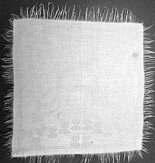 Pieni neliönmuotoinen liina, jossa loimi- ja kudelankahapsut.