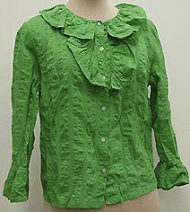 Pitkähihainen , ylälantiolle ulottuva pusero, jossa pyöreä, avarahko pääntie. Kaksinkertainen, poimutettu kaulus, joka jatkuu yhtämittäisena edustan puoleenväliin. Hihojen suissa samanlainen poimutelma. Edestä auki, kiinnitys napein