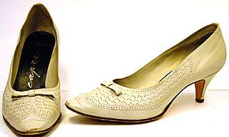 Naisen avokasmalliset kengät, joissa kärki kapeneva, pää katkaistu. Korko puolikorkea, alaspäin kapeneva, ns. piikkikorko. Päällinen ja vuori nahkaa. Pohja nahkaa.
