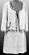 Jakku: lyhyt suora Chanel-vaikutteinen jakku. Istutetut pitkät suorat hihat. Pääntie edestä avara U-muoto. Oikealla edessä alareunassa pyöreäkulmainen paikkatasku. Pääntietä, etureunoja, helmaa ja taskun alareunaa kiertää koristenauha. Puku: vyötärösaumaton pohjepituinen suora hihaton puku. Sivusaumoista loivasti muotoiltu. Avara pääntie, jossa edestä lähtee pyöreäpohjainen halkio. Pääntietä ja halkiota reunustaa koristenauha. Sivusaumassa vetoketju