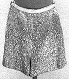 Kultakankaiset mikrot, joissa vyötärönauhana kuminauha. Vasemassa sivusaumassa vetoketjuhalkio. Vaalean ruskea tekokuitupalttina vuori.