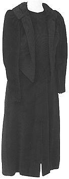 Jakku: lyhyt istuva jakku. Hihat istutetut, ylhäältä pussimaiset, alhaalta kapeat,sisäsaumassa vetoketju. Isohko poimutettu takaa nouseva suorakulmainen herrainkaulus, yläliepeet hieman pidemmät. Alaliepeet ulottuvat vyötärölle saakka. Edessä ei kiinnitustä. Helmassa edessä ja takana V-mallinen leikkaus. Puku: vyötärösaumaton suora pohjapituinen puku. Hihaton, pääntie pyöreä. Takana keskisaumassa vetoketju, edessä keskisaumassa alhaalla halkio. Kokonaan vuorillinen, takakappaleessa lisäksi alaosassa liimakangas.