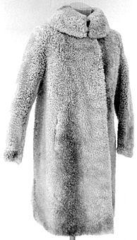 Vyötärösaumaton suora pitkä turkki. Pitkät suorat istutetut hihat. Isohko laakakaulus,jossa hakanen. Etusaumoissa sisätaskut. Vuorissa piilonapitus, solmiamisnauhat ja hihansuissa kuminauhat. Ripustuslenkki ja nappilenkit katkenneet.