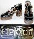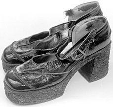 Paksupohjaiset, paksu- ja leveäkorkoiset kävelykengät mustaa lakerijäljitelmää. Kärki neliönmuotoinen. poikittainen ja pysty koristetikkaus. Sivuista avoimet, edessä keskellä yhtymäkohta remmiin, joka lähtee umpinaisesta kantapäästä. Vuori keinonahkaa.
