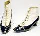 Suippokärkiset, korolliset nilkkakengät, joissa alaosa ja korko on mustaa lakeria. Yläosa säärystimen omaisesti valkoista muovia. Edessä tiheä metallihakasrivistö, ohut kengännauha, sisäläppä. Nahkavuori ja huopapohja. Pohja muovia.