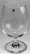 Lyhyt- ja ohutjalkainen konjakkilasi. Jalkalevyn reuna viisto. Ohutseinäinen. Kuperakylkinen, suuaukko pienehkö.
