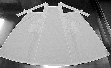 Rintatilkullinen, polven alle ulottuva talousesiliina, jossa leveät olkaimet ja vyötärökaitale. Kiinnitys kangaspäällysteisin napein. molemmin puolin kaarevasuiset päälitaskut.
