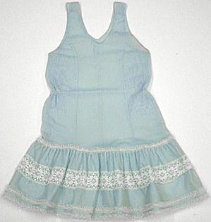 Yläosasta vartalonmyötäiseksi ommeltu alushame, jossa lantion kohdalta lähtee runsas poimutettu helmaosa. Pääntie avarahko, reunassa kapea koneommelpäärme, samoin käsiaukoissa. Sivuissa molemmin puolin vyötäröllä pieni kuminauhapoimutus.