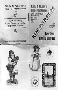 Pystysuorakaiteen muotoinen, paperikantinen vihko, Koululaisen Muistikirja. Kannen sisäsivulle painettu lukujärjestys. Sivut ruutupaperia. Sivuille liimattu erilaisia ja erikokoisia kiiltokuvia. Ei muistokirjoituksia, vain muutamalle kiiltokuvalle on annettu nimi: Ingeborg, Mikko Taneli.