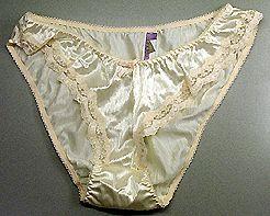 Lahkeettomat alushousut, joissa etureuna kaareutuu pitsikoristeisena hyvin ylös. Vyötäröllä kuminauha ja edessä pieni rusetti.
