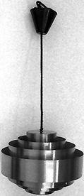 Yhden valopisteen kattovalaisin. Metallinen versio lastuvalaisimesta. Valaisimen yläosa ja alaosa identtiset. Keskeltä levein, kapenee ylös- ja alaspäin. Valaisin koostuu sisäkkäin limittäin menevistä, pystysuoraan asetetuista metallikehistä. Keskellä ulommaisena levein ja korkein (n. 7 cm) kehä. Muut kehät hieman matalampia. Musta kangaspäällysteinen johto ja musta muovinen kattokuppi.