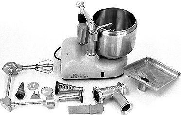 Runko: runko suorakaiteen muotoinen, edestä reuna pyöristetty. Runko takaa hieman korkeampi kuin edestä. Rungossa moottoriosa. Vas. kyljessä virtakytkin. Oik. kyljessä kaksi kuminastaa, jotta laite voidaan asettaa kyljelleen. Takaa lähtee musta sähköjohto. Edestä katsottuna vas. lähtee varsi, johon voidaan kiinnittää varusteita. Varsi voidaan lukita 3 eri asentoon. Päällä metallitappi, johon asetetaan esim. taikinakulho. Taikinanalustusvälineet: teräskulho taikinan vaivaamista varten. Kulho asetetaan rungon päällä olevan metallitapin varaan. Lisäksi varteen kiinnitettävät osat: puinen sekoitusrulla ja puinen reunakaavin. Kaksoisvatkain: varrellinen kaksoisvatkain, joka asetetaan rungon päällä olevan metallitapin varaan. Lihamylly varusteineen: lihamylly, joka asetetaan rungon päällä olevan metallitapin varaan ja runko käännetään kyljelleen. Mukana erillinen suorakaiteen muotoinen syöttöalusta ja puinen syöttösurvin. Lisäksi peltinen makkarantäyttötorvi, mehupuserrin, kaksi pursotinlevyä, lihamyllyn vaihtosylinteri ja yksi pieni kolmiomainen levy, josta leikattu pois neliönmuotoinen pala.