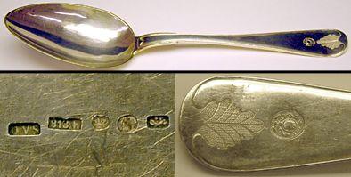 Varren reunaa kiertää kapea ura. Varren päässä urasta lähtee himmeäkuvoinen akantuslehtikoriste. Sen alapuolella suvun vaakuna. Varren pää taipuu hieman ylöspäin. Lusikan pesän alapuolelle kaiverrettu ns, "rotanhäntä." Vartta kiertää alapuolella reunaura, joka lavan kärjessä kääntyy sisäänpäin muodostaen kääntyvän huipun.