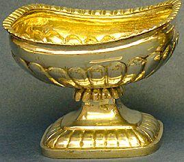 Suola-astian maljaosa suorakaiteen muotoinen. Sitä kiertää kupurakoristelu. Maljaosan yläreunaa kiertää vaakatasossa nauha. Jalassa koristeena lehtikaulus. Jalka päättyy suorakaiteen muotoiseen laattaan, jonka koristeena on tiheä kupuravyö.