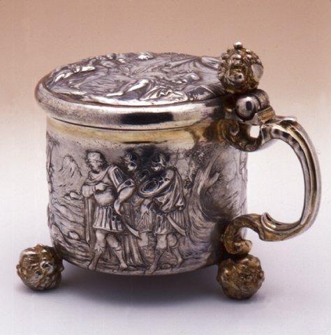 Kolmella kuulajalalla seisova lieriökannu. Kansi kuperareunainen, laakea. Kädensija D-muotoisesti kaartuva. Peukaloripa valettu, kuulamainen. Runsas pakotuskoristelu. Kannun sivuja kiertää mytologinen uhrikuvaus. Kannessa kohtaus Diana-tarusta. Kannun sisusta, yläreuna, jalat ja nuppi kullattu. Kannussa sekä Abraham Carrén että Hans Meijerin leimat. Epäselväksi jää, kuinka suuri osuus Meijerillä on ollut kannun valmistamisessa. Hans Meijer korjannut?