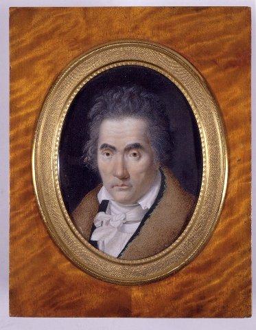 Soikea miniatyyri. Vanhahkon miehen rintakuva. Mustanharmaat kiharat hiukset, tuuheat, osin harmaantuneet kulmakarvat. Ruskeat silmät. Valkoinen pystykauluksinen paita, valkoinen kaulaliina. Musta takki joka näkyy päällystakin ruskean turkiskauluksen alta. Tummanharmaa tausta. Empiretyylinen suorakaiteen muotoinen mahonkikehys, kuva-aukon reunassa soikea rasteripintainen, palmettikoristeinen messinkikehys.