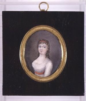 Soikea miniatyyri. Nuoren naisen rintakuva, vartalo vasemmalle, kasvot kohti katsojaa. Siniset silmät, ruskeat hiukset joissa punainen nauha. Valkoinen syvään uurrettu puku, punainen vyö. Harmaa tausta. Miniatyyrin ympärillä kapea messinkikehys, joka upotettu mustaksi maalattuun suorakulmaiseen puukehykseen. Konservaattori Veikko Kiljunen puhdistanut vuonna 1959.
