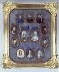 Taulu, jossa 12 Ruotsin hallitsijoita esittävää soikeaa miniatyyriä (kopioita hallitsijoiden muotokuvista). Keskellä kaksi muita suurempaa miniatyyriä, näiden ympärillä kehässä 10 pienempää miniatyyriä. Siniharmaaksi maalattu taustapaperi, johon leikattuihin aukkoihin miniatyyrit on kiinnitetty. Miniatyyrien ympärille on maalattu kullanväriset kehykset, joiden yläreunassa on kruunu ja yläpuolella maalattu sininen rusetti. Miniatyyreissä on sininen tai sinertävä tausta lukuunottamatta kuningatar Kristiinan kuvaa, jossa tausta on vaaleaksi marmoroitu (jäljitellen norsunluuta?). Hallitsijat järjestyksessä myötäpäivään alkaen ylhäältä keskeltä: Kustaa Vaasa, Eerik XIV, Juhana III, Kaarle IX, Sigismund, Kustaa II Aadolf, Kristiina, Kaarle X Kustaa, Kaarle XI, Kaarle XII ja keskellä Fredrik I ja Ulrika Eleonora nuorempi. Uudempi kullattu puukehys, jossa koristeellisesti veistetyt kulmat. Lasi.