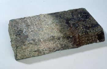 Korrodoitunut suorakulmainen sinkkiharkko, jonka sivut hieman vinot. Poikittaissuunnassa harkon pinnassa urat noin 7 cm:n päässä reunoista. Keskellä harkon yläpintaa on epämääräisen muotoinen koholla oleva kohta. Harkon materiaalin on alustavasti analysoinut tutkija Seppo Hornytzkyj Ateneumista. Harkko on sinkkiä, mutta tarkka koostumus on vielä selvittämättä.