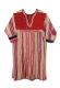 Kokonaan käsin ommeltu mekko, jonka hameosa ja hihat ovat raidallista kangasta, mahdollisesti sarkaa , sidos loimivaltainen ripsi. Hameosa on ommeltu kymmenestä kaitaleesta siten, että edessä on neljä ja takana kuusi kaitaletta. Takakappaleet on poimutettu vyötärölle. Yläosa on punaista toimikkaaksi kudottua villakangasta, olkakappaleet ovat erilliset. Etukappale on yhtenäinen, mutta takakappale koostuu kahdesta osasta. Etu- ja takakappaleet on yhdistetty hihojen alle ommelluilla suorakaiteen muotoisilla palasilla. Olka- vyötärö- ja takakappaleen keskisaumat on päällystetty erilaisin, osin myös ostetuilla kankaanpaloilla sekä koristeltu tereillä. Vyötärö on koristeltu kahdella erilaisella ostonauhalla. Pääntien halkio on reunustettu käsin valmistetulla pitsillä: Pitsin reunat on huoliteltu pykäpistoin ja lisäksi koristeena on tihein laakapistoin reunustettuja ympyröitä, joiden keskustat on leikattu pois.