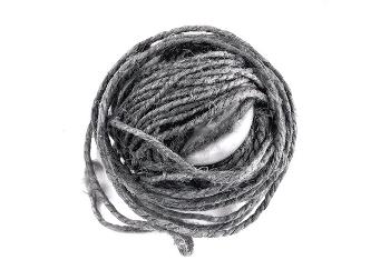 Poron takajalan reisiluun alapäästä valmistettu keränpohjallinen, jonka ympärille on kierretty paksua ruskeaa lankaa.
